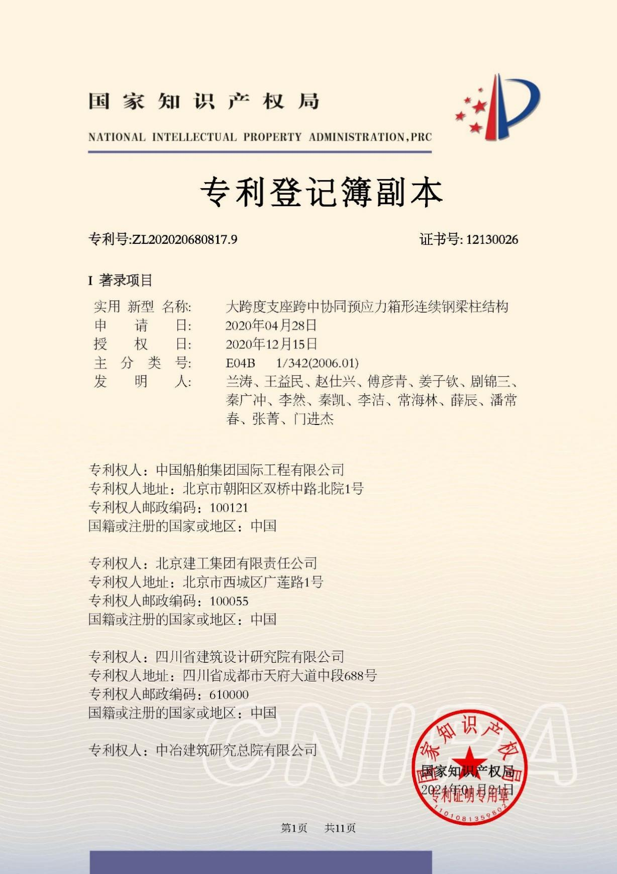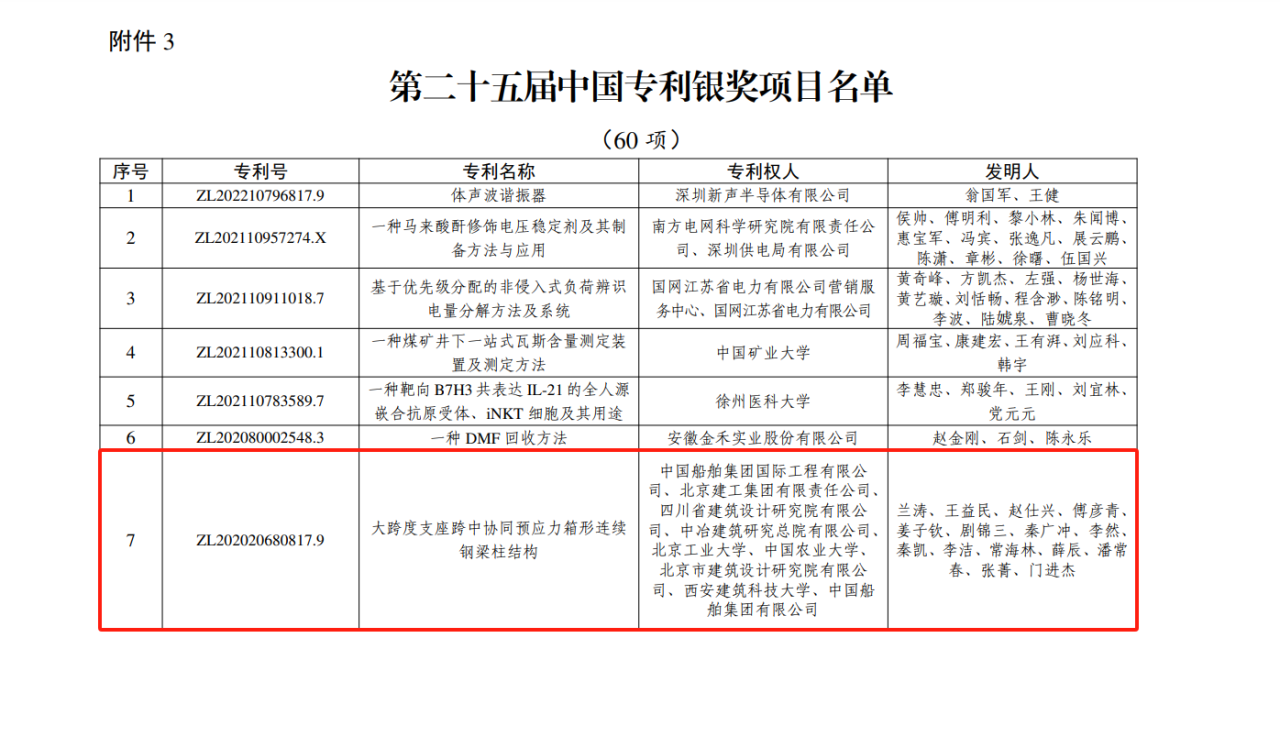 今年6月,国家知识产权局公布第二十五届中国专利奖授奖决定,由中船集团旗下中船国际工程主导申报的专利《大跨度支座跨中协同预应力箱形连续钢梁柱结构》(专利号:ZL202020680817.9)荣获本届中国专利银奖。该奖项由国家知识产权局与世界知识产权组织联合设立,是我国专利领域的最高荣誉。今天,让优发国际走进中船国际工程钢结构工程设计与研发团队,聆听他们的奋斗故事。