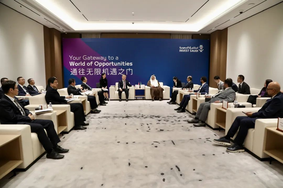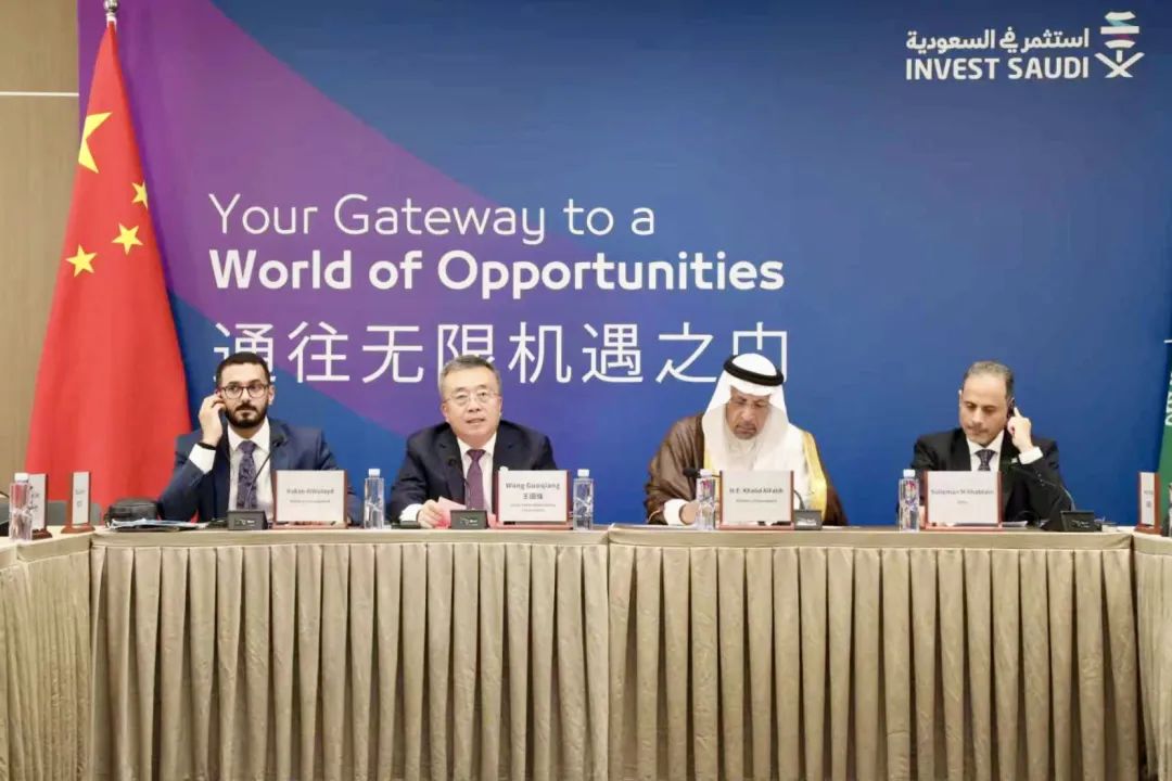 会谈结束后,王国强与哈立德·法力赫共同出席了由中船集团和沙特投资部联合举办的沙特-中国造船供应链圆桌会议并致辞。