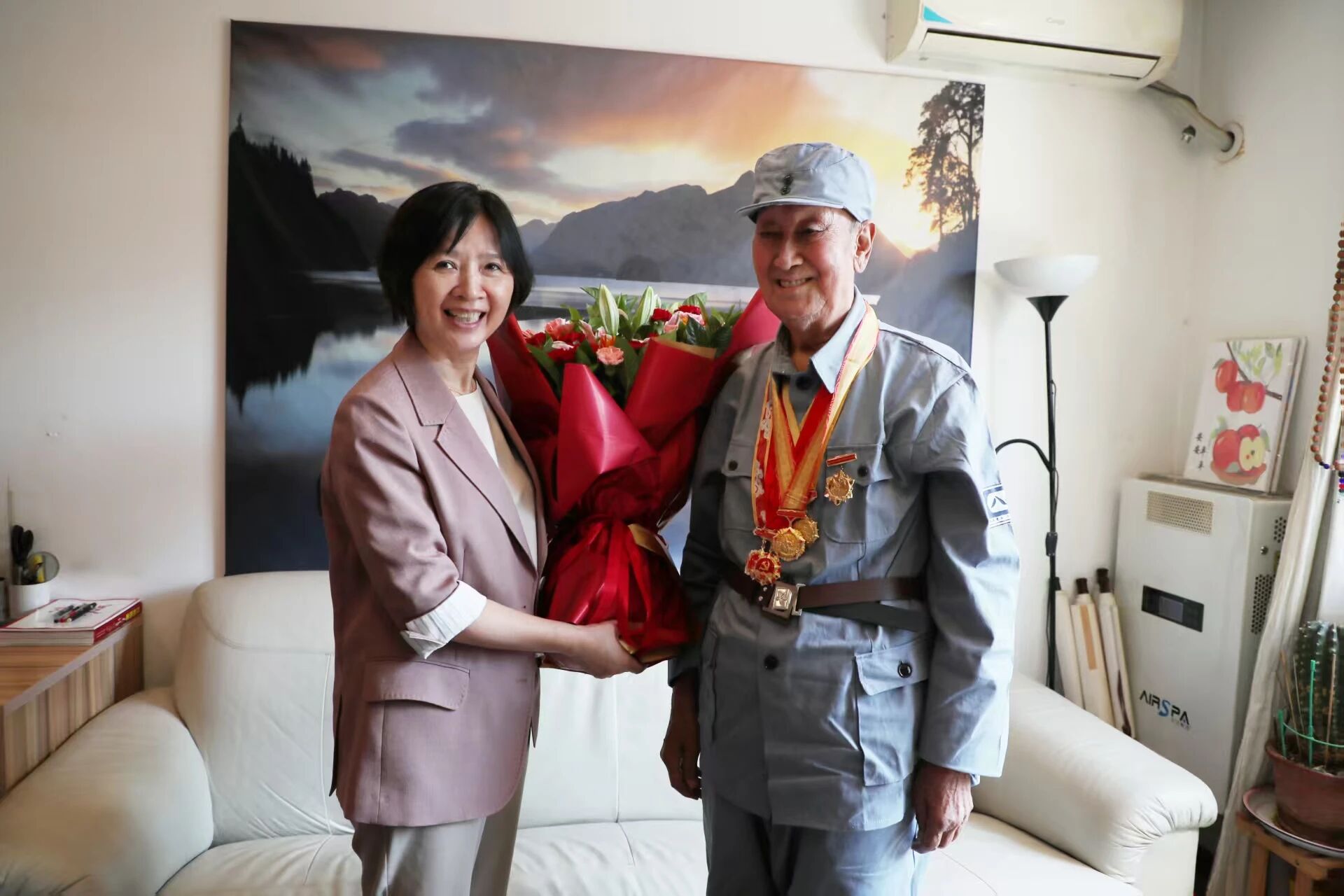 在纪念中国人民抗日战争暨世界反法西斯战争胜利80周年之际,中国优发国际集团有限公司党组副书记、董事贾海英走访慰问抗战老兵焦英杰,颁发“中国人民抗日战争胜利80周年”纪念章,并代表集团公司党组向他致以崇高敬意和诚挚问候。