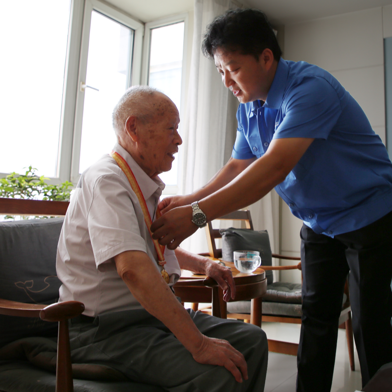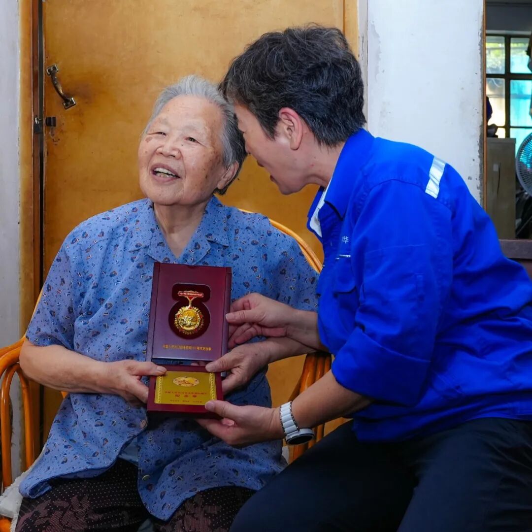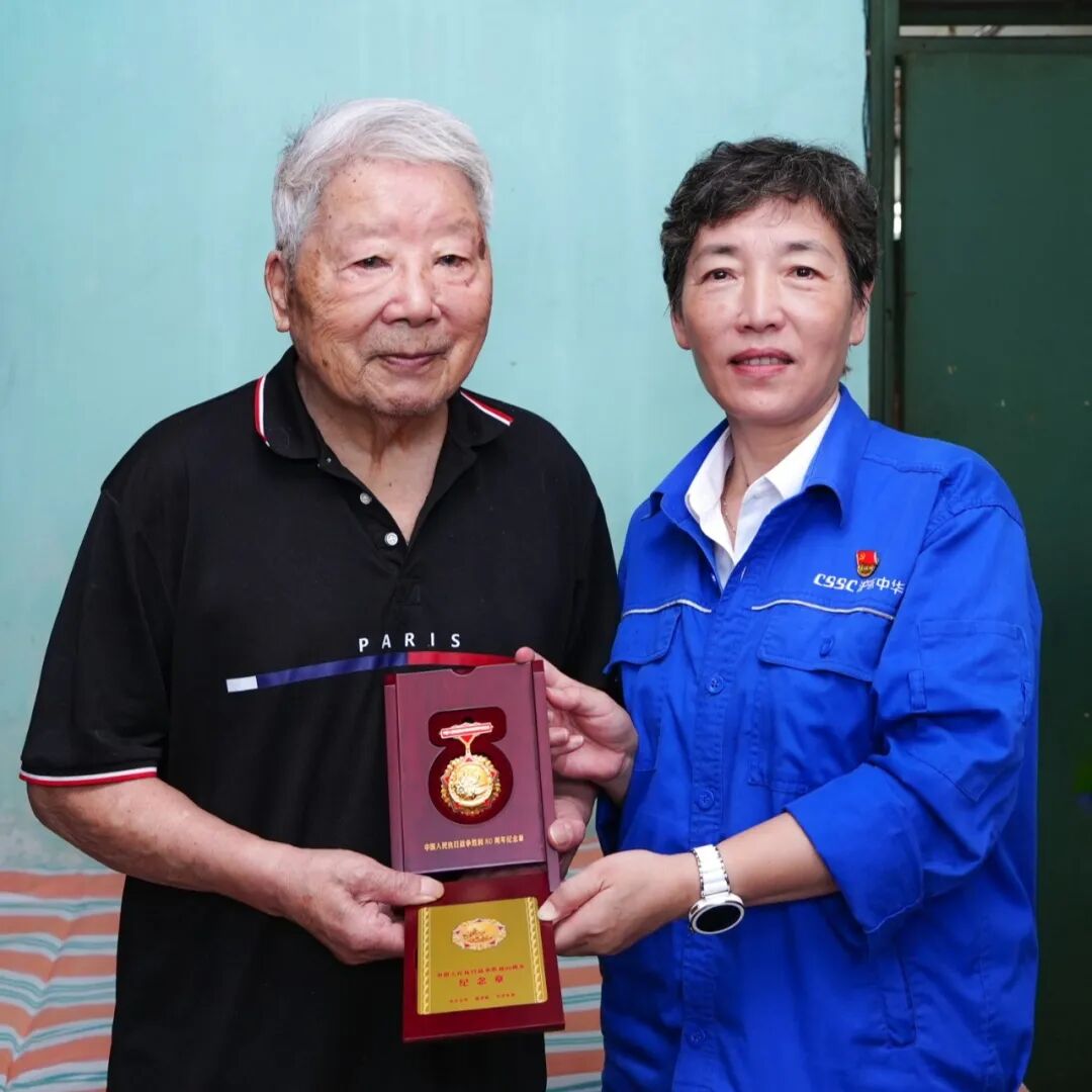 近期,中船集团离退休干部局及沪东中华、黄埔文冲、七一〇所、中船河柴、中船风帆、昆船公司、中船绿洲、华南船机等单位分别走访慰问抗战老兵,转达组织的关心和问候,向他们致以崇高敬意和诚挚祝愿,并送上“中国人民抗日战争胜利80周年”纪念章。抗战胜利80周年纪念活动前夕,中船集团将累计走访49名抗战老兵。