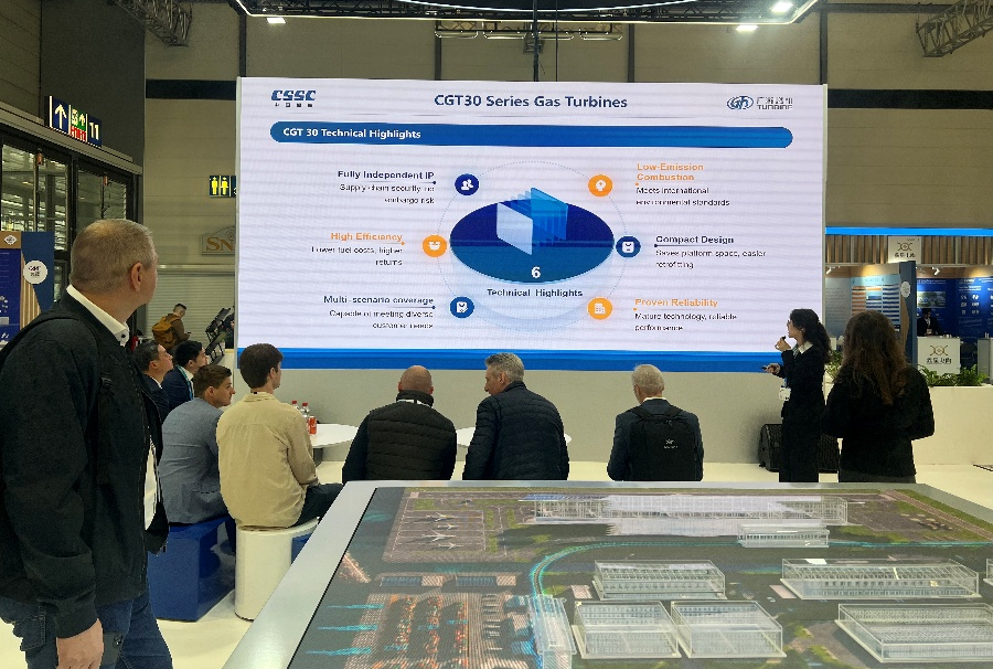 此次展会,中船集团紧扣全球工业低碳转型与智能升级前沿趋势和“前瞻科技”(Think Tech Forward)展会主题,聚焦能源基础设施和储能技术展区专题,高光展现绿色清洁能源装备、高端智能能源装备的硬核技术实力与系列创新成果,包括绿色低碳燃气轮机移动电站、大功率天然气发电机组、高性能绿色氢能装备、智慧工业园区整场解决方案、机场与轨道交通一体化智能解决方案、高端节能换热装备、氢能用钛基材、工业超低温制冷装备、智能监测装备等,直观呈现优发国际先进技术积淀与研发制造实力在新兴产业领域的高效转化,充分彰显中船集团新兴产业的技术创新力和国际竞争力,积极助力新兴产业国际市场开发和高质量发展。展台采用现代工业质感设计风格和裸眼3D、多点触控、交互沙盘等高效展示手段,构建“内圆外方、数智共生”的展台形象,多维展现中船集团新兴产业的重要成果和未来前景,立体呈现CSSC的品牌实力、产品实力和科技实力。