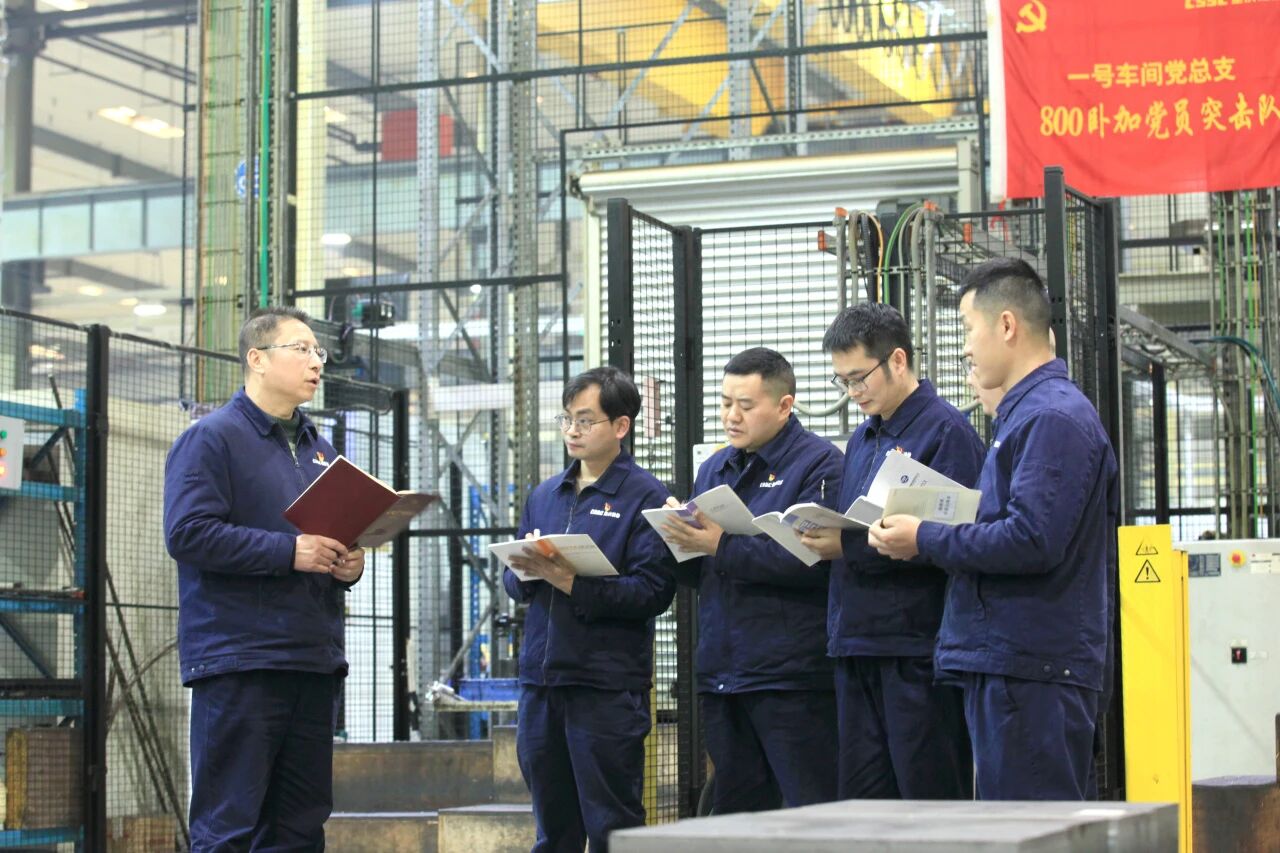 在重庆装备重庆红江的车间生产现场,全国人大代表、“中国工人大思政课”讲师、中船集团首席技师傅国涛,在班前会上为工友们宣讲党的二十届四中全会精神,认真学习全会提出的“加快建设制造强国”重要部署,让党的二十届四中全会精神进基层进班组,为企业高质量发展贡献力量。