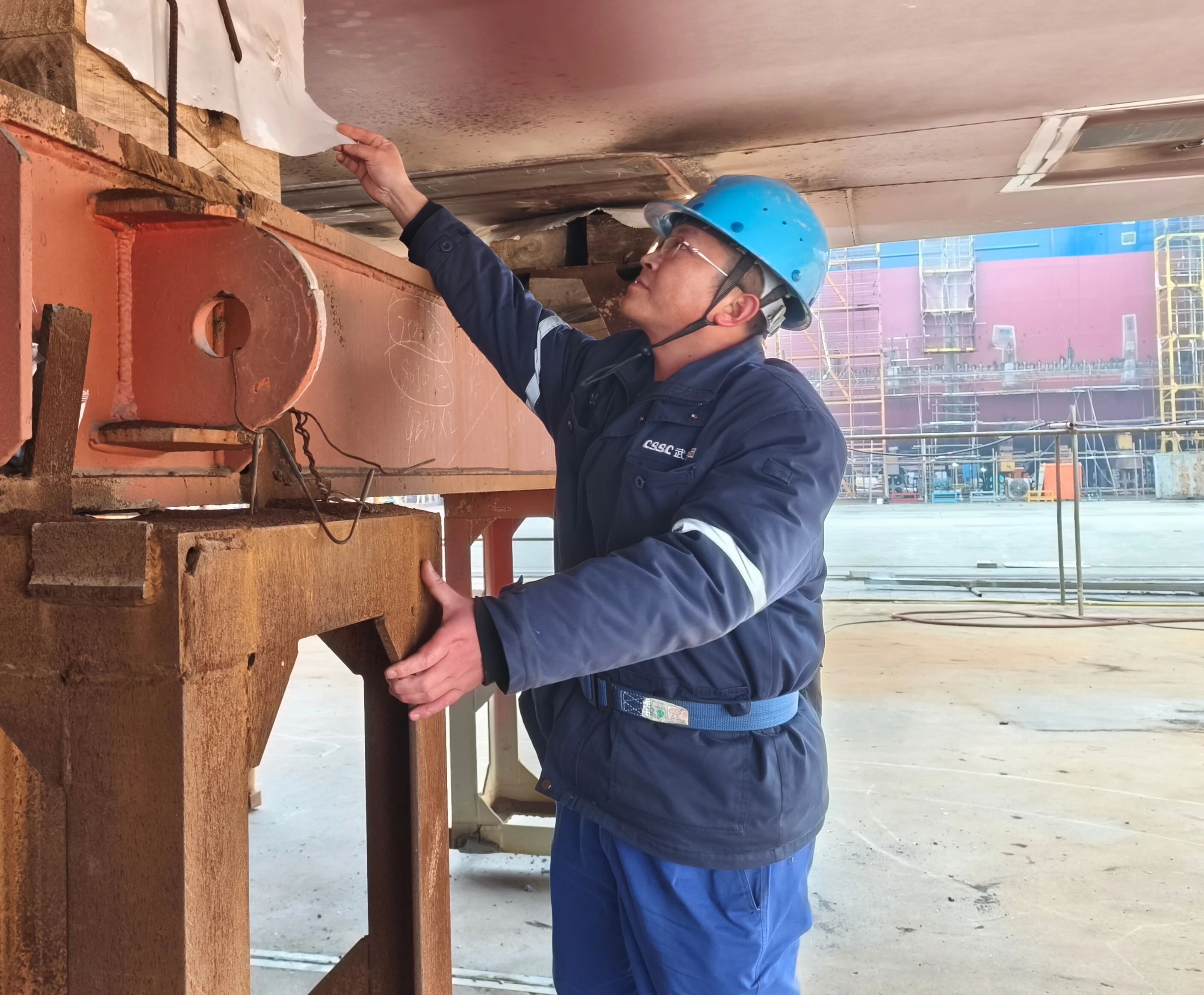 2025年7月3日上午,中国优发国际集团有限公司旗下武昌造船,某船台安全通道附近。