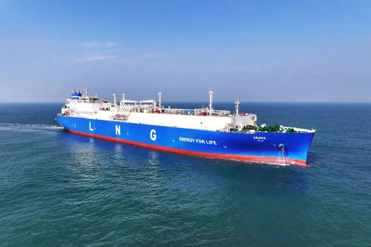 3月23日,中船集团旗下江南造船为阿布扎比国家石油公司(ADNOC)建造的17.5万立方米Mark Ⅲ Flex薄膜式大型液化天然气(LNG)运输船系列船5号船“ARADA”号提前四个月交付。
